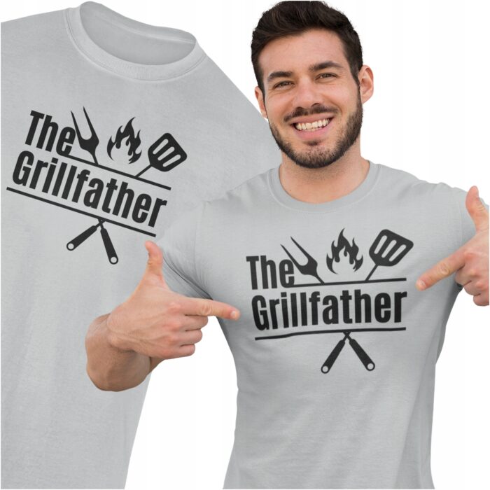 Koszulka T-Shirt z śmiesznym wzorem GRILLFATHER Koszulka z ciekawym nadrukiem to idealny pomysł aby wyróżnić się z tłumu lub sprawić