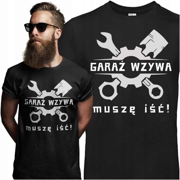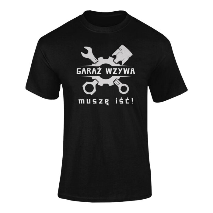 Koszulka T-Shirt z śmiesznym wzorem GARAŻ WZYWA MUSZĘ IŚĆ Koszulka z ciekawym nadrukiem to idealny pomysł aby wyróżnić się z