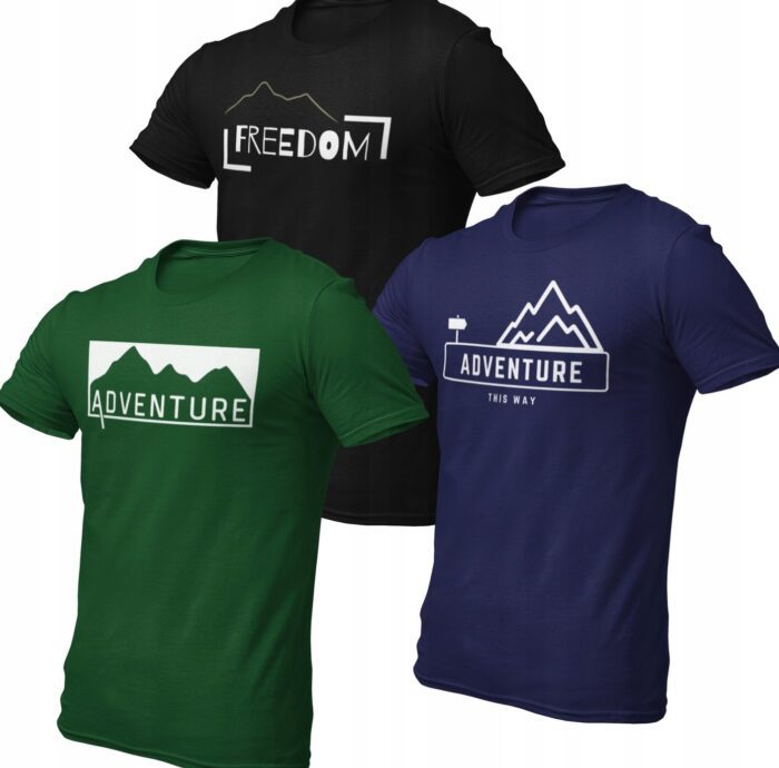 T-shirt 3szt ZESTAW Koszulka męska wakacje 100% BAWEŁNA 3pak W GÓRY | S