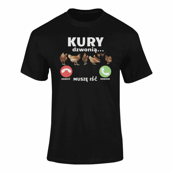 Koszulka T-Shirt z śmiesznym wzorem KURY DZWONIĄ MUSZĘ IŚĆ Koszulka z ciekawym nadrukiem to idealny pomysł aby wyróżnić się z