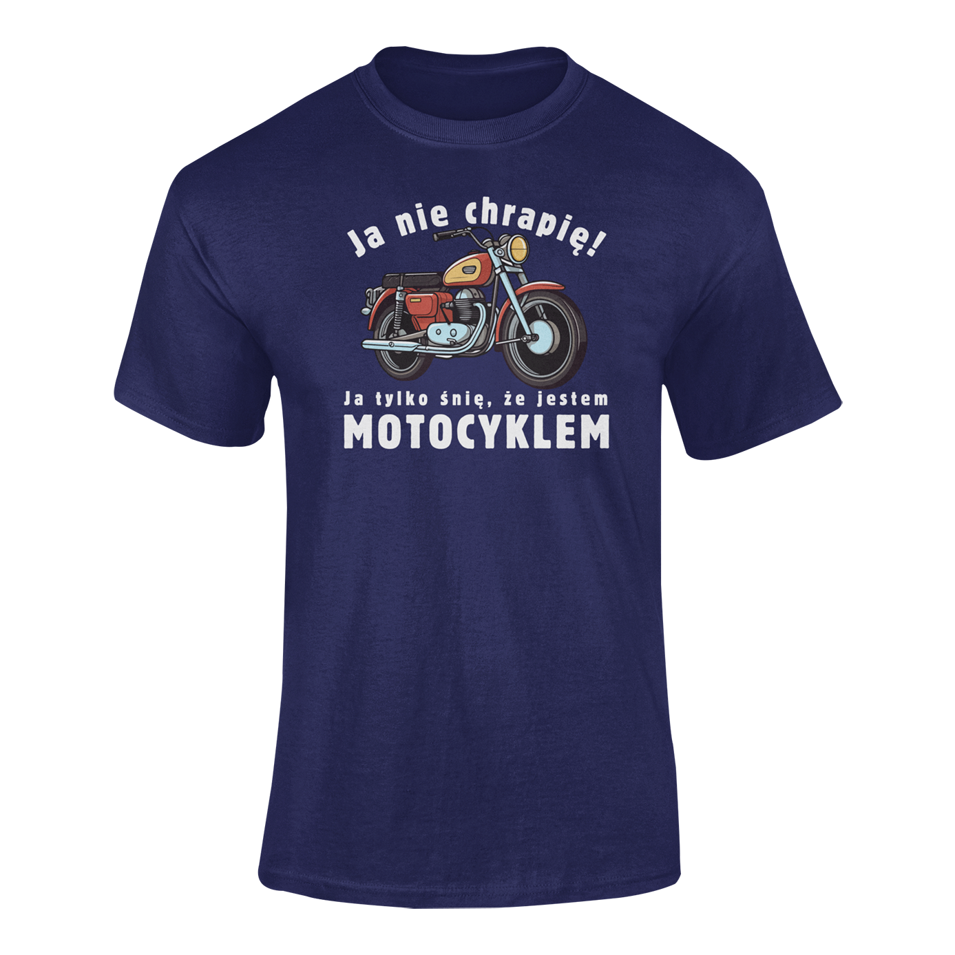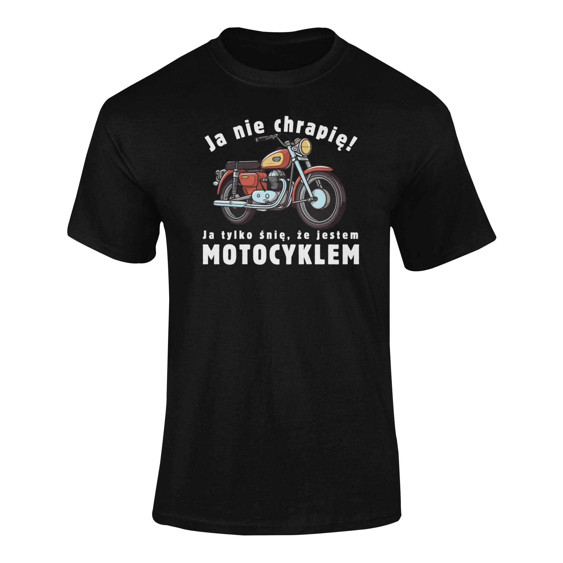 Koszulka T-Shirt z śmiesznym wzorem JA NIE CRAPIĘ JA ŚNIĘ ŻE JESTEM MOTOCYKLEM