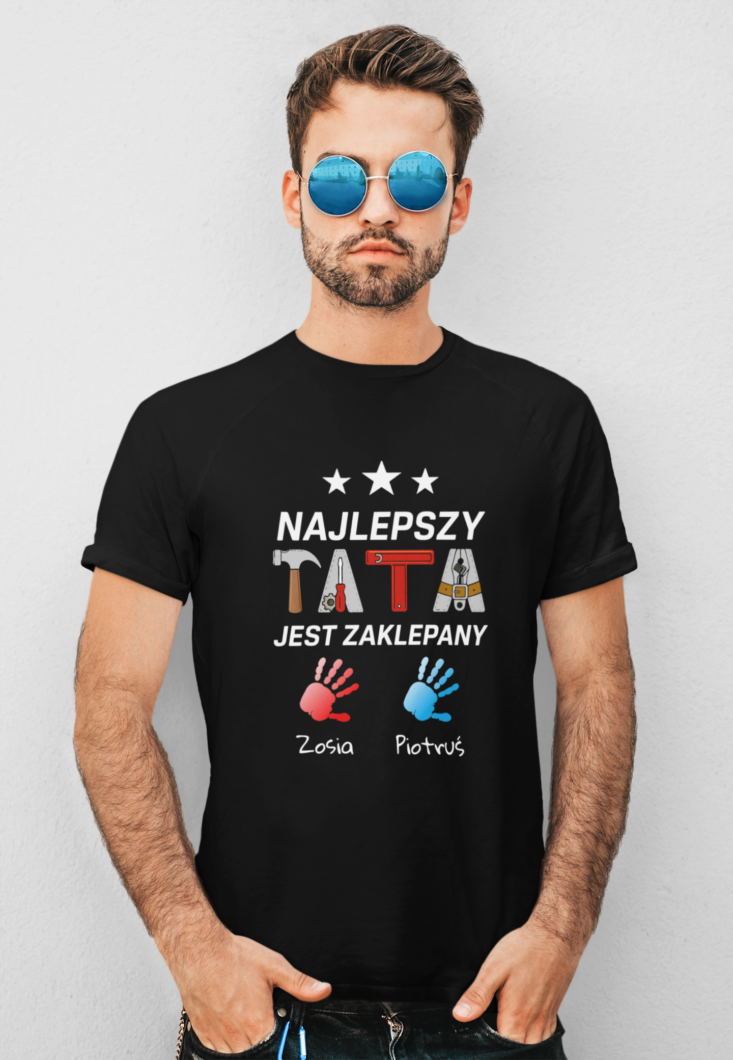 NAJLEPSZY TATA +IMIĘ DZIECKA- koszulka z nadrukiem