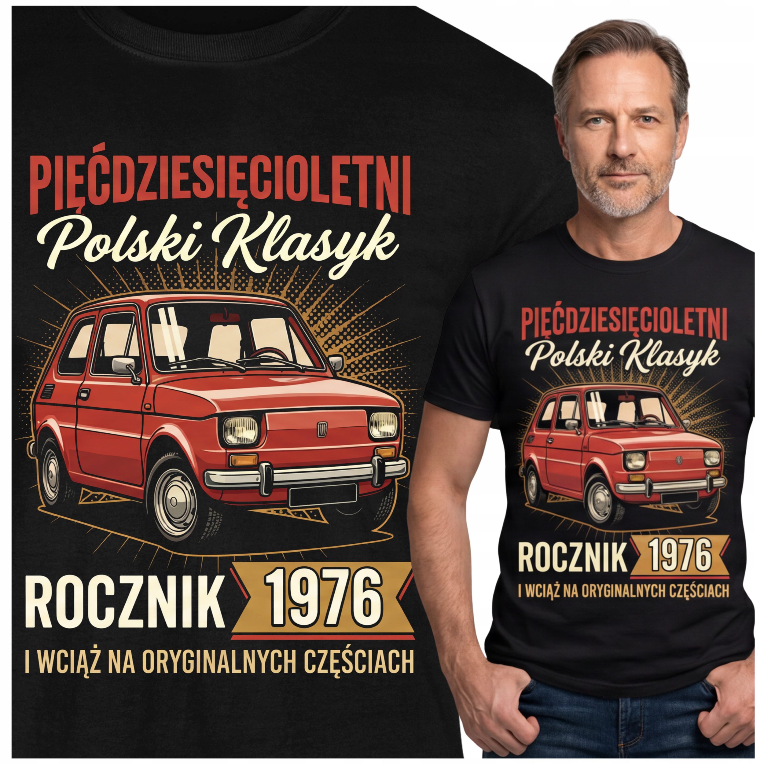 PREZENT na 50 URODZINY dla Mężczyzny Koszulka ROCZNIK 1976 FIAT MALUCH PRL