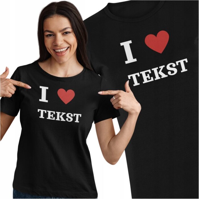 I LOVE+ TWÓJ TEKST- koszulka z nadrukiem